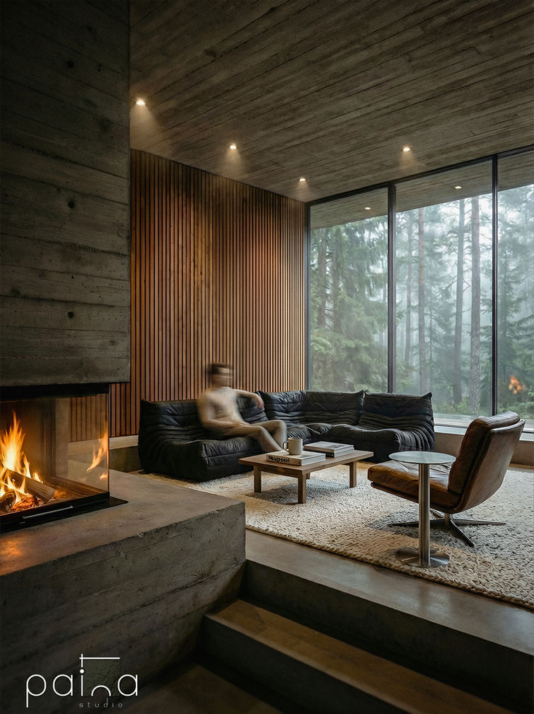 Focused on soft transitions and natural materials—curved wood, concrete, and diffused light. The intention was to create a calm, continuous space that feels warm, quiet, and connected to nature.